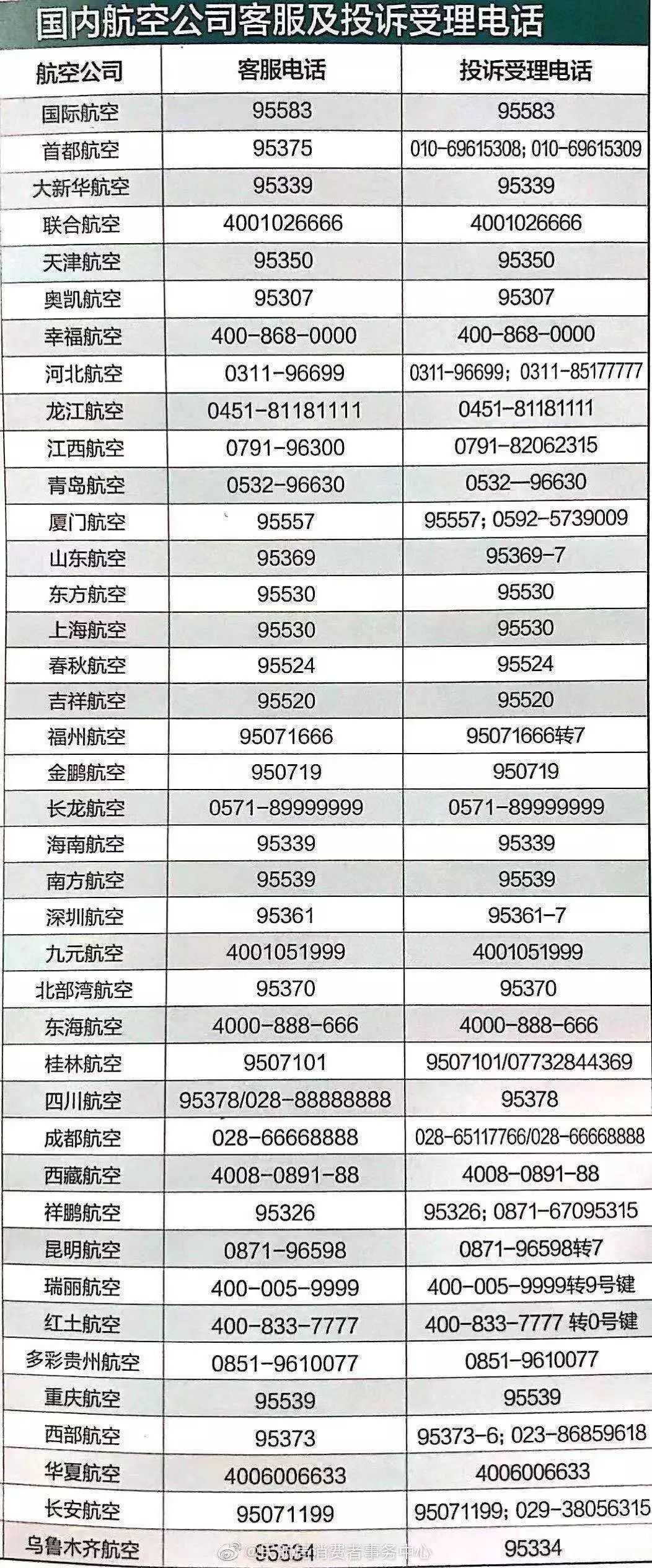 航空公司客服热线请收好: