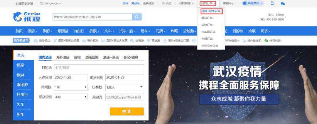携程网站截图