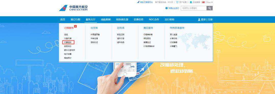 中国南方航空网站截图
