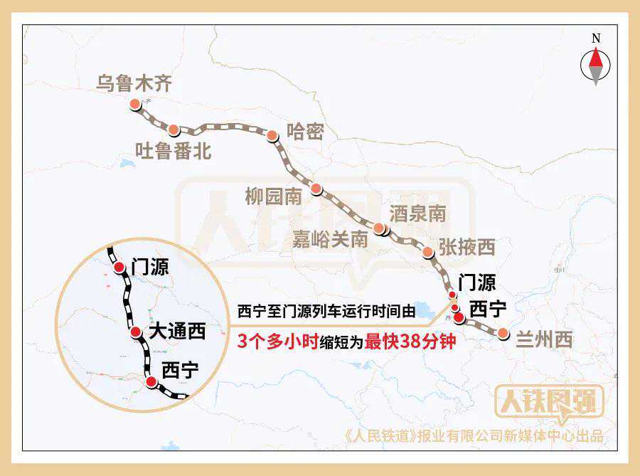 连接甘肃兰州至新疆乌鲁木齐的兰新高铁全长1786公里,是世界上一次性建成通车里程最长的高速铁路。西宁至门源的列车运行时间由原来3个多小时缩短为半个多小时。