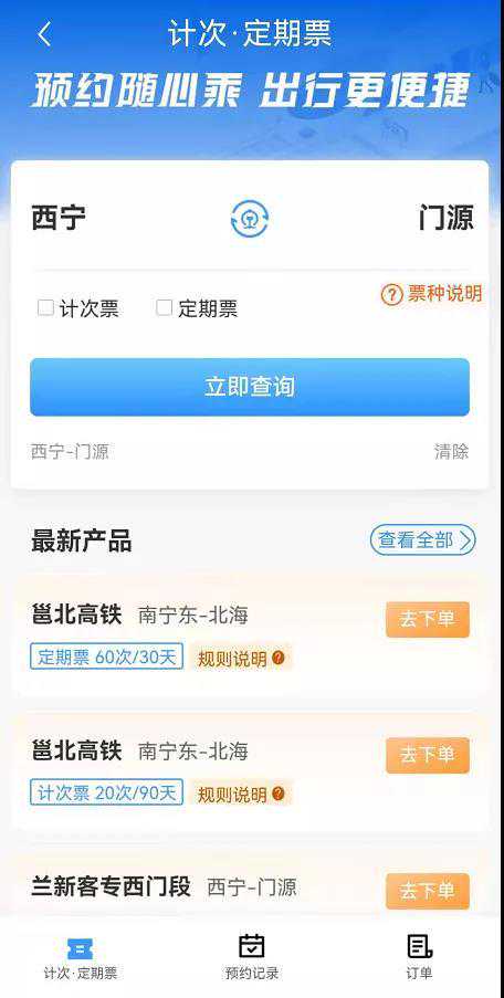 旅客可在铁路12306网站、铁路12306APP、自助售票机提前预约产品所对应发到站及席位。预约成功后,旅客持购买产品时使用的有效身份证原件进站检票乘车。