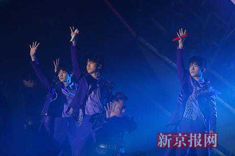 新京报快讯(首席记者刘玮)今晚TFBOYS五周年演唱会在工体举行。开场,王俊凯、易烊千玺、王源三人身穿紫色骑士装从天梯式升降台中亮相,带来了的《superstar》,此后接连演唱了两首《大梦想家》《快乐环岛》。在随后和主持人的互动环节中,谈及出道五年的感想,TFBOYS表示,今晚能站在这么大的舞台上很开心,也希望自己和所有的歌迷一起进步。