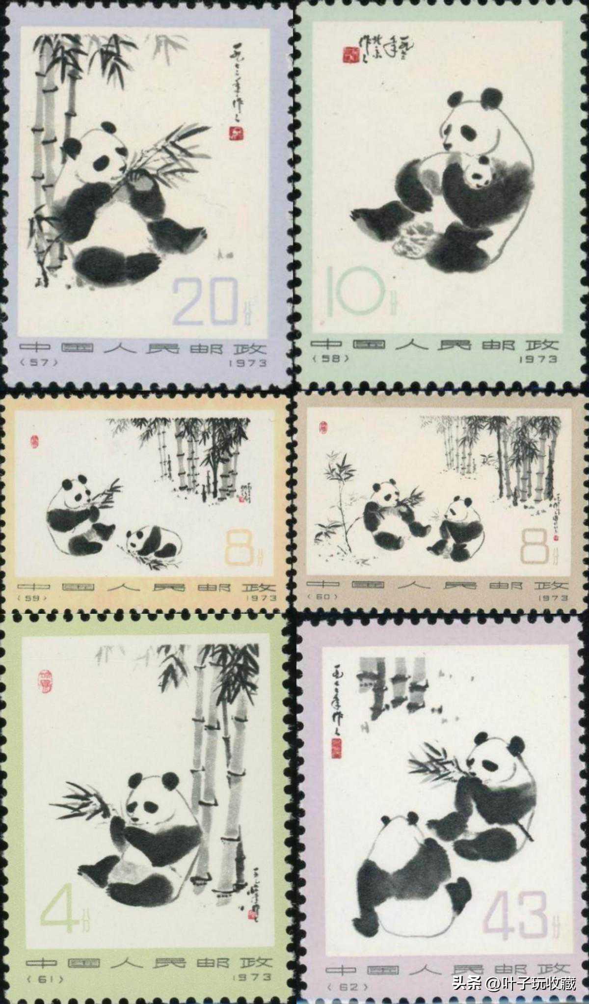 编57-62熊猫由许彦博设计,于1973年1月15日发行。全套6枚,全张50枚,发行量1000万套。