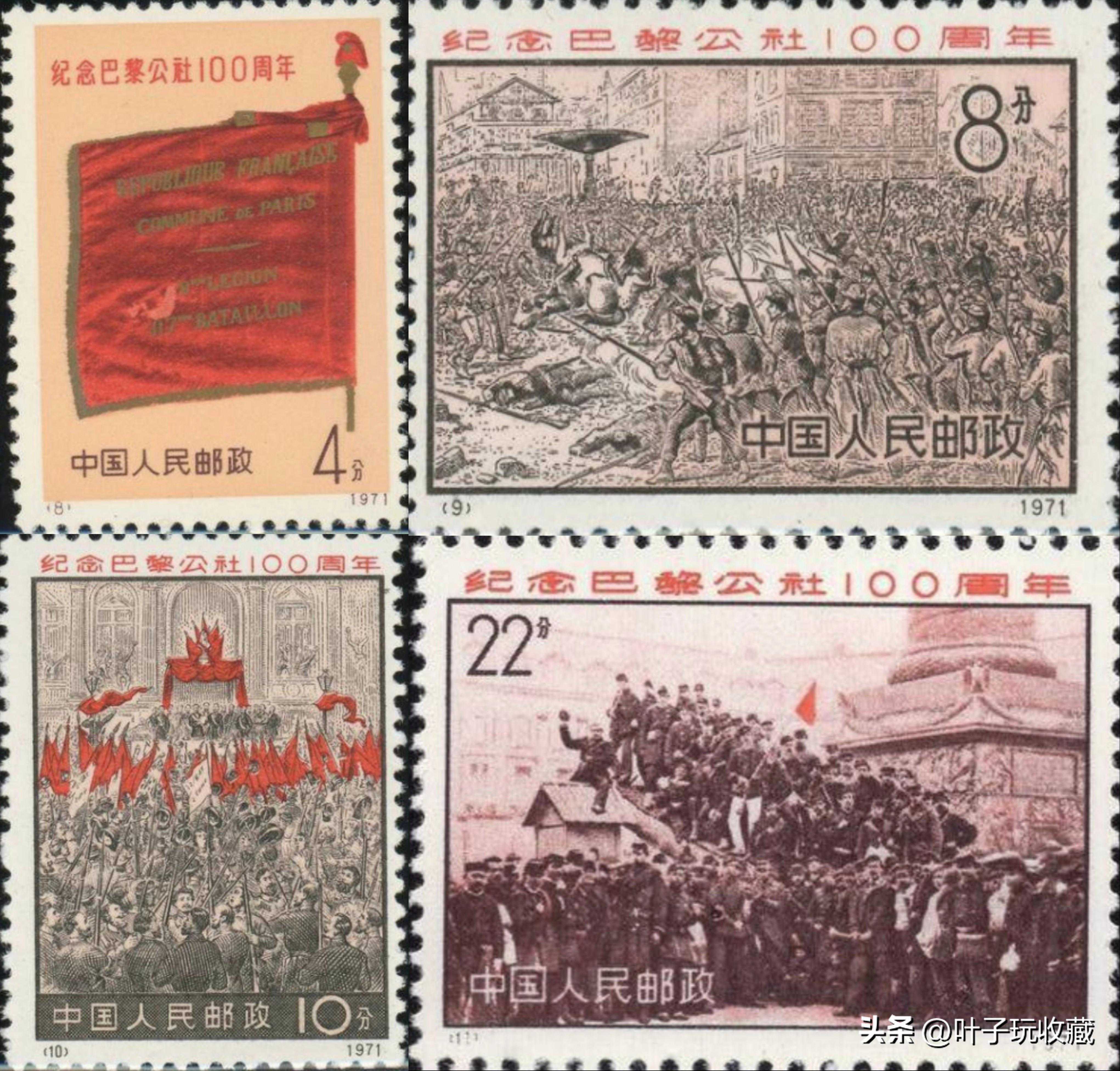 编8-11纪念巴黎公社100周年由张克让、吴建坤共同设计,全套4枚,全张50枚,发行量200万套。