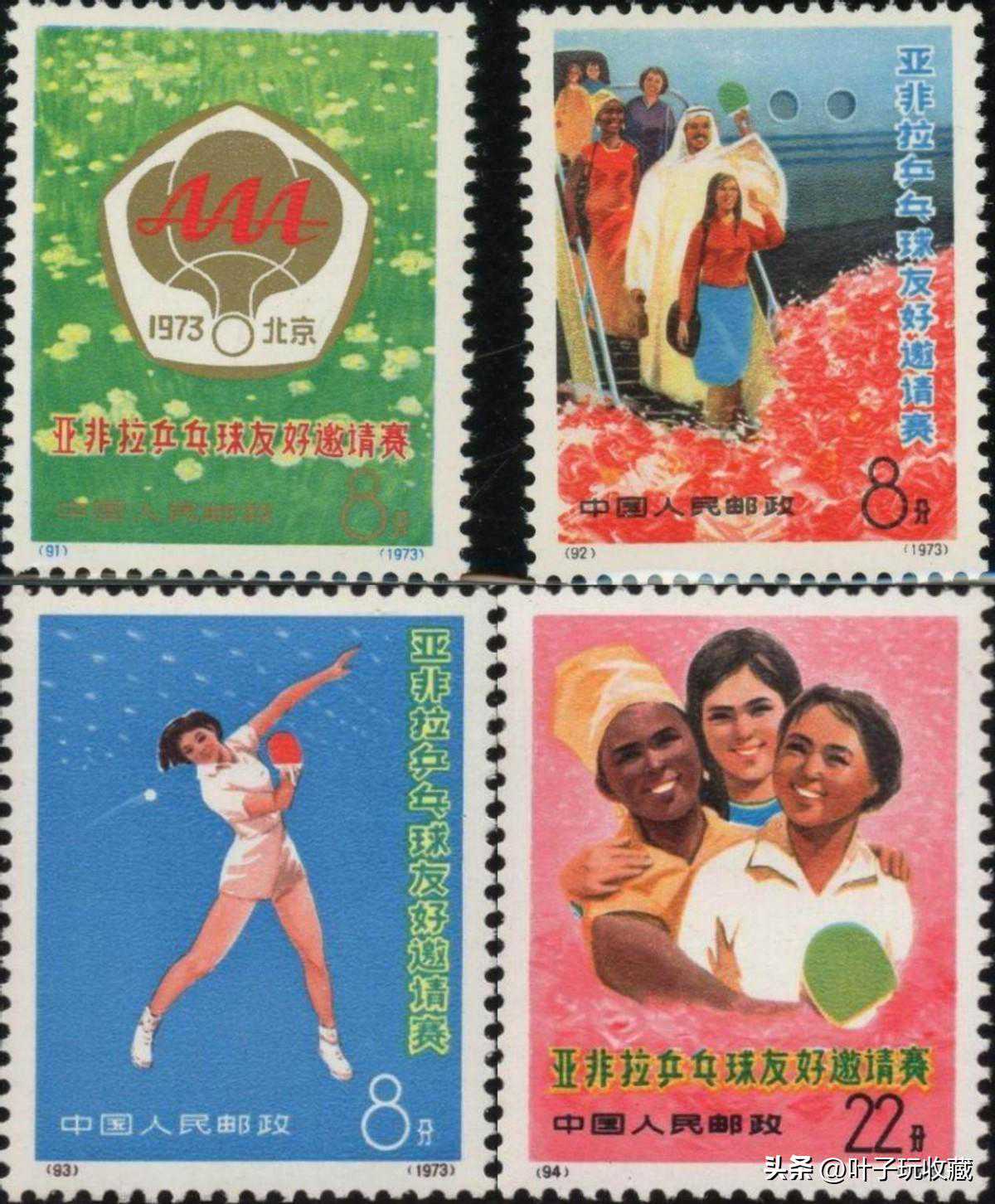 编91-94亚非拉乒乓球友好邀请赛由张克让设计。1973年8月25日发行。全套4枚,全张50枚,发行量200万套。