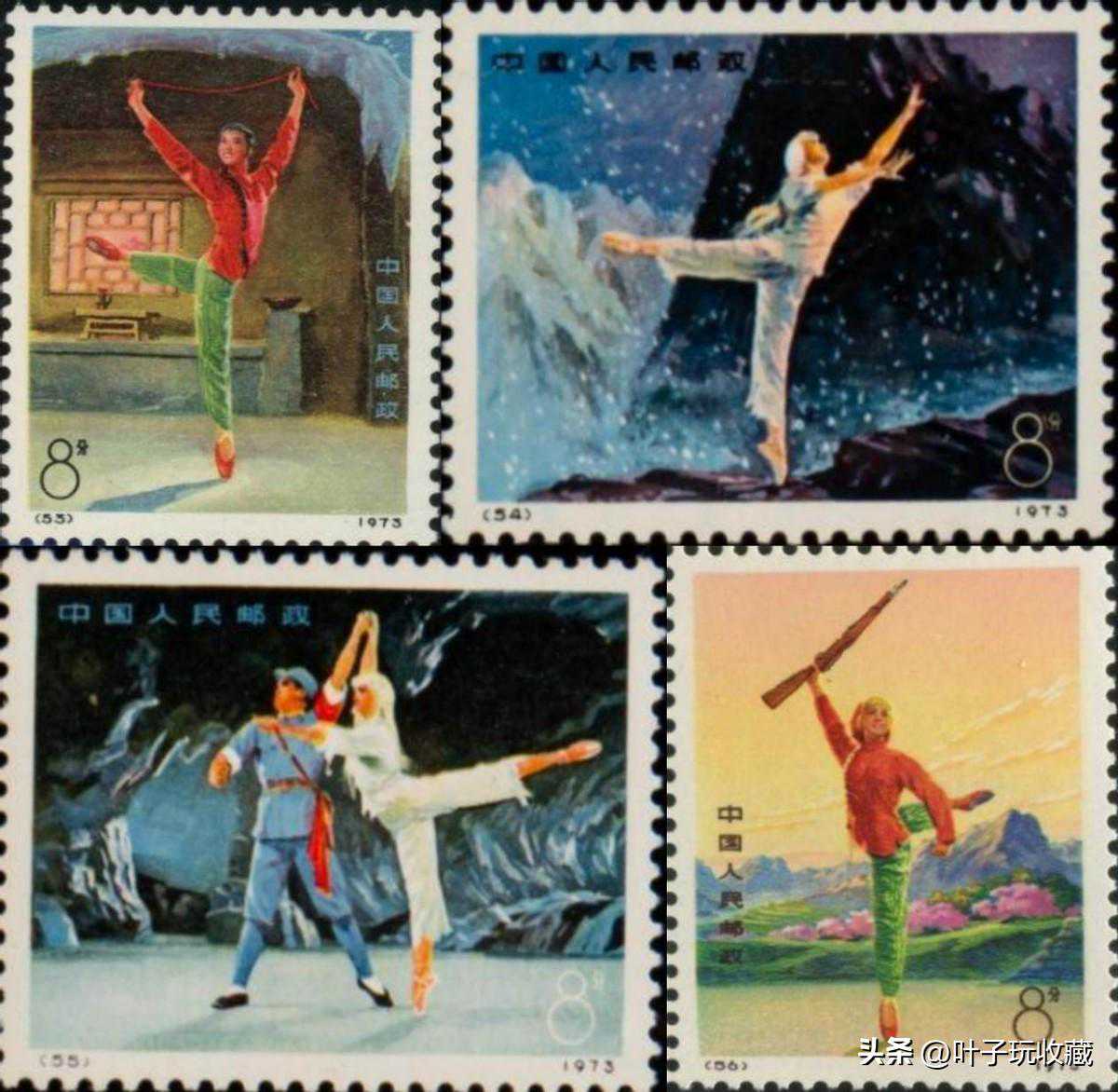 编53-56革命现代舞剧《白毛女》由尹定邦、杨白子共同设计,于1973年9月25日发行。全套4枚,全张50枚,发行量347万套。