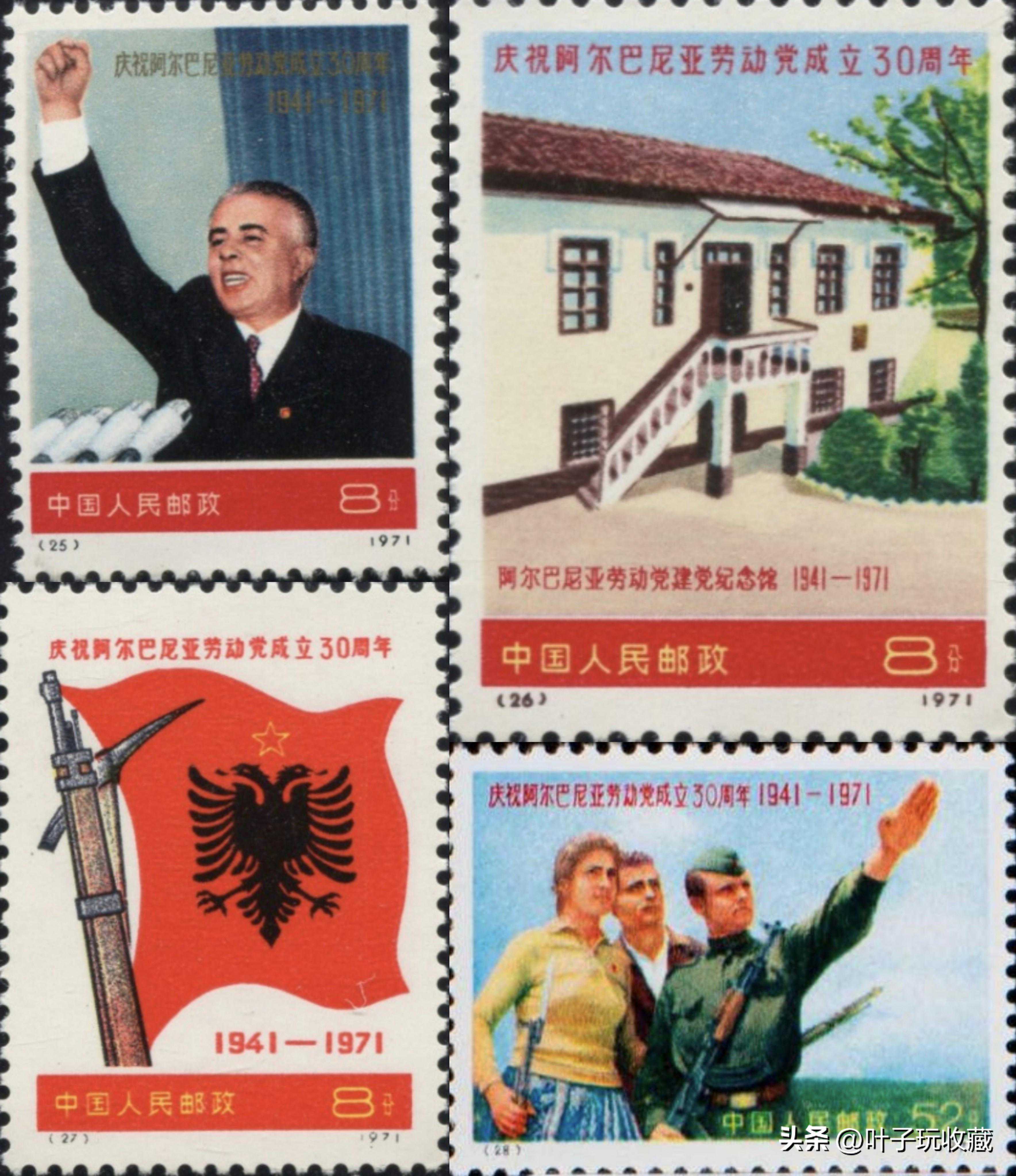 编25-28庆祝阿尔巴尼亚劳动党成立30周年于1971年11月8日发行,全套4枚,全张50枚,发行量125万套。