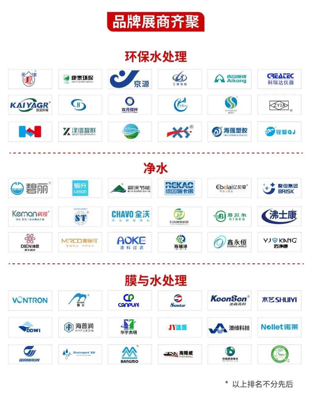 同期举办多场行业主题论坛,涵盖工业节水、超纯水应用、新能源工业废水、纺织园区节水减污、节水减污与资源化、水处理膜技术、石油与化工废水、建筑/市政给排水、全屋净水产业发展、净水市场新技术、净水营销实战等热门主题,为来自国内外的优质商家、买家、专业观众打造一个集买家会晤、商贸洽谈、新品发布、高峰论坛、媒体曝光、现场交易等功能为一体的高品质水处理商贸平台!