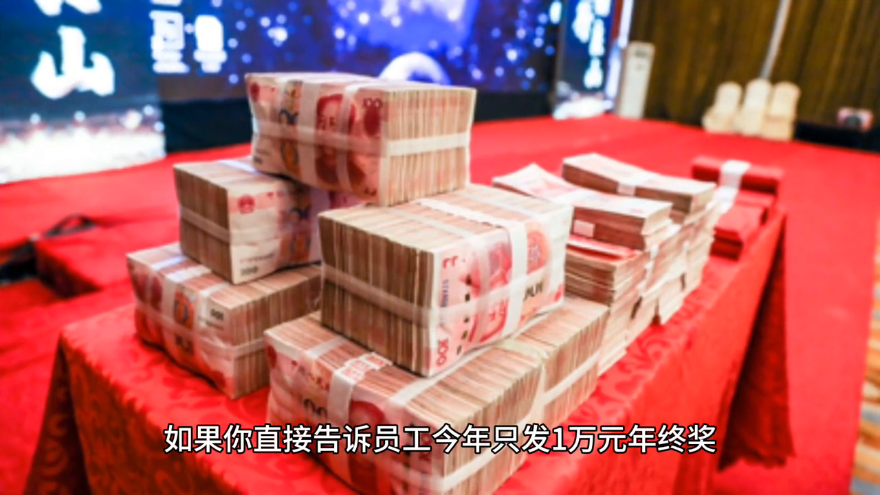 现在让我们回到公司的场景,假设今年公司的生意不景气,年终奖可能比往年少很多。比如前年发了7万,去年发了5万,而今年可能只发1万。如果你直接告诉员工今年只发1万元年终奖,他们可能会觉得老板很小气甚至考虑明年就跳槽。