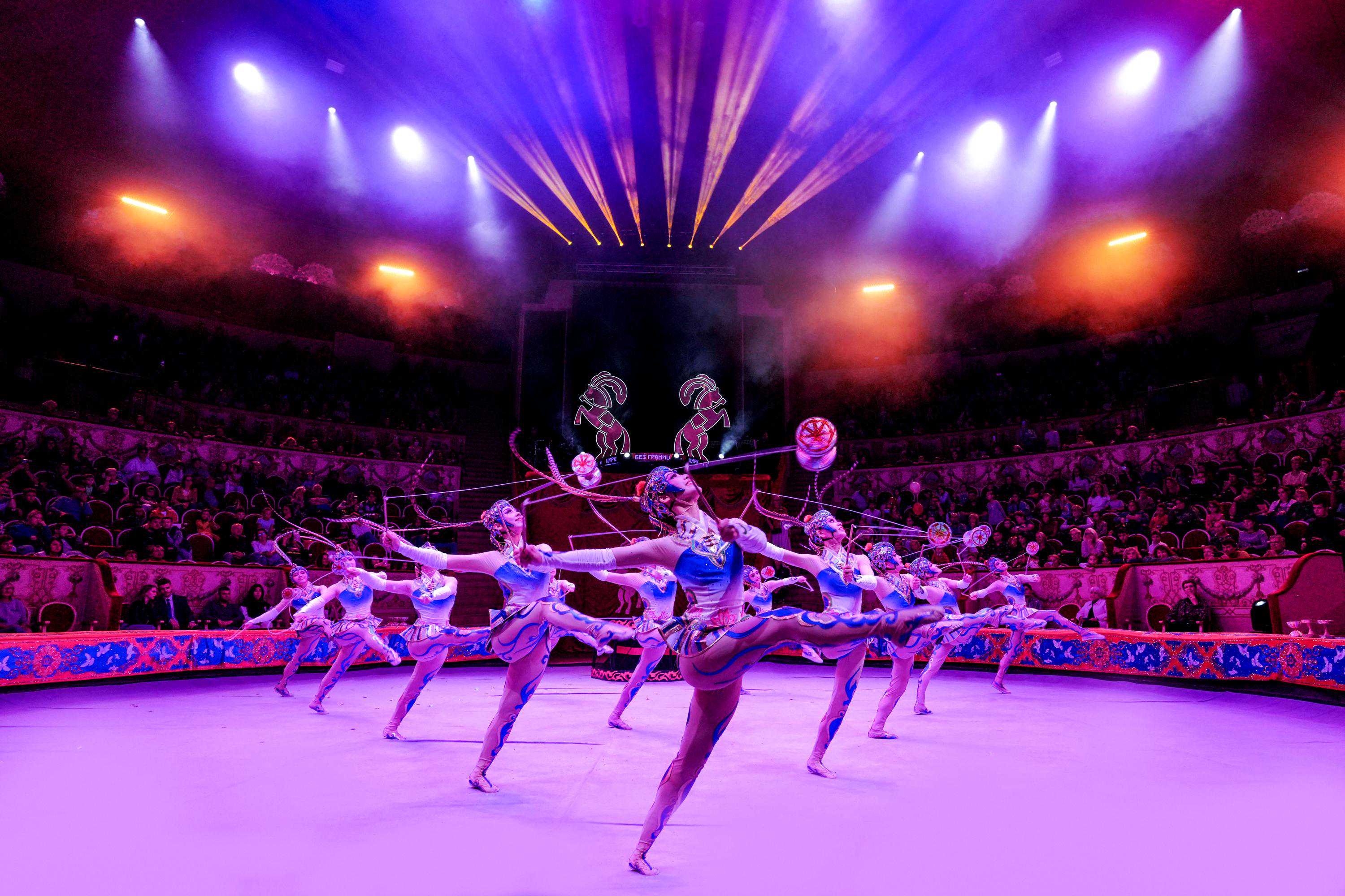 中国杂技团的经典之作《俏花旦·集体空竹》问鼎第二届俄罗斯“无国界”国际马戏节金奖。北京演艺集团供图