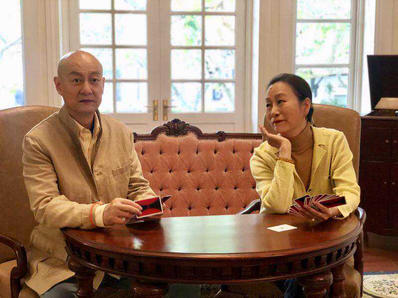 由奚美娟、关栋天联袂主演的话剧《洋麻将》中文版正在排练。(供图)