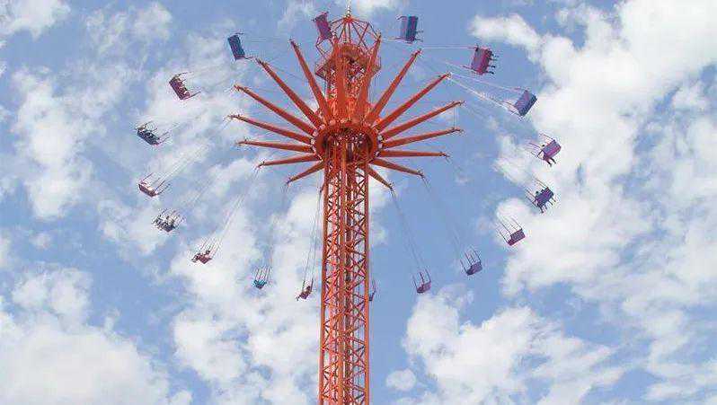 ▲高空飞翔:50米高空,上下飞旋。像在蓝天中翱翔,又像似海上冲浪,感受腾云驾雾的快感。