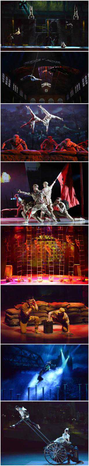 挑战促使剧组上下一心啃“硬骨头”。创作团队和演员们在创排过程中打破了许多原有的杂技节目编排和表演模式,在展现杂技惊险、刺激、柔美同时,融入现代戏剧表演元素。17个保留和新创节目,涵盖杂技、魔术、滑稽等样式,创新了9种全新的表现形式,并在杂技技巧、道具上都进行了重大的改革创新。《战上海》用上海杂技团在国际上屡获金奖的“八人造型”来表现国民党军死守的姿态,衬托出人民解放军突破守围之困难,“双人组合——力”表现外围战中打得最艰苦的高桥之战,简约而传神,手技、柔术、双人爬杆等多种杂技手法与音乐组合,展现4位地下党员在国际饭店宴会中智取密件的全过程,双人滚环、双人力量、双人绸吊等展现两位主人公从相识相恋到为了共同信仰而暂时分别的情感历程,为舞台上带来了唯美浪漫的画面。
