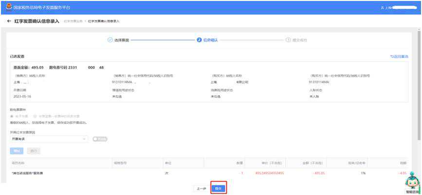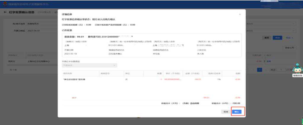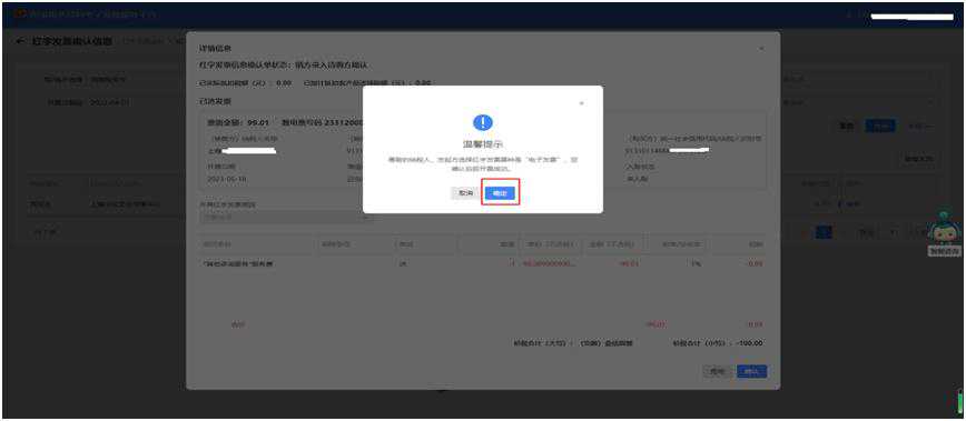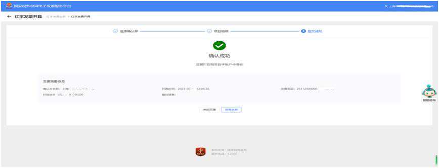 红字发票开具成功,实现确认即开具。