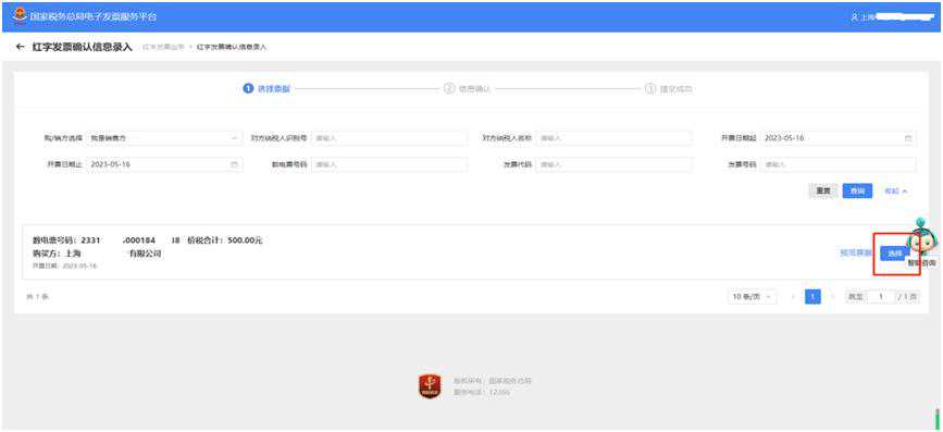 如果您单位开具的数电票,对方还没有勾选,只需找到需要开具红字发票对应的蓝字发票,选择好数电票票种和开具红字发票原因后,提交并确认后即开票成功。