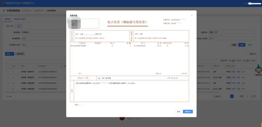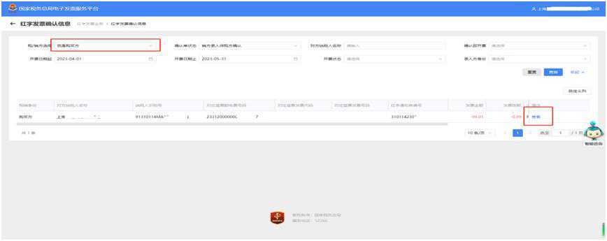 3.确认无误后,显示确认成功,在【税务数字账户】——【发票查询统计】——【全量发票查询】,我们可以看到已经成功开具的红字发票,确认即开票,无需对方再行操作。