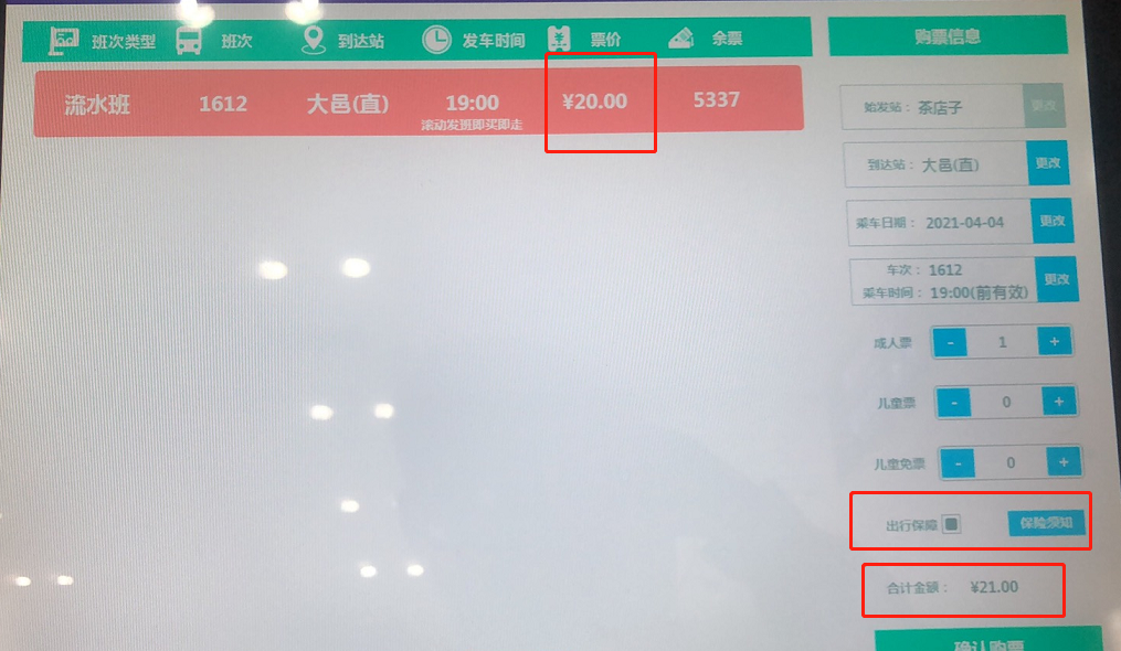 自助售票机默认选择“出行保障”