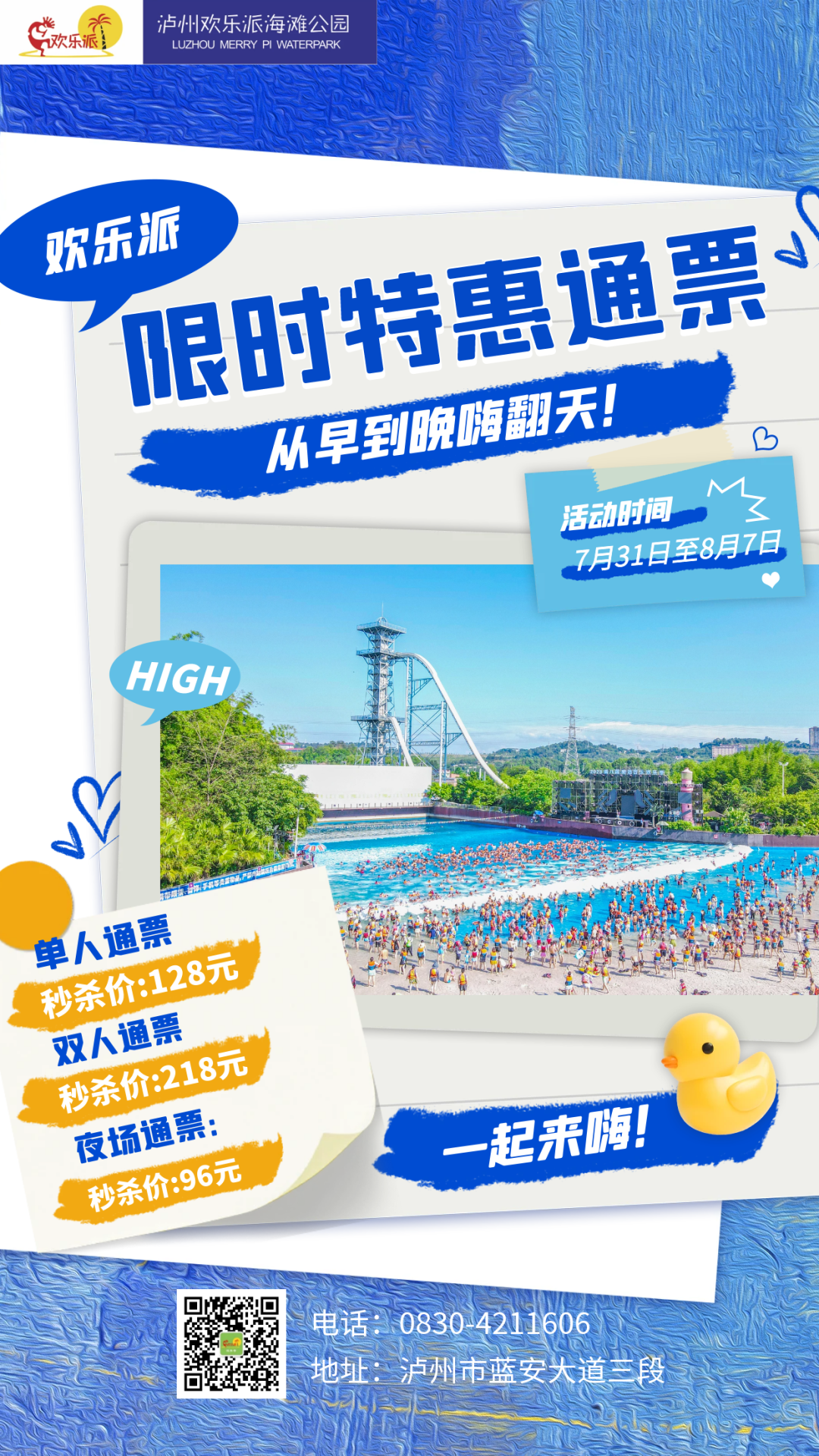来自泸州欢乐派的消息,热浪持续升温up,即日起至8月7日,电音特惠限时加仓一周!通票原价188元,热浪电音特惠单人票仅售128元/张(日夜场通用)。