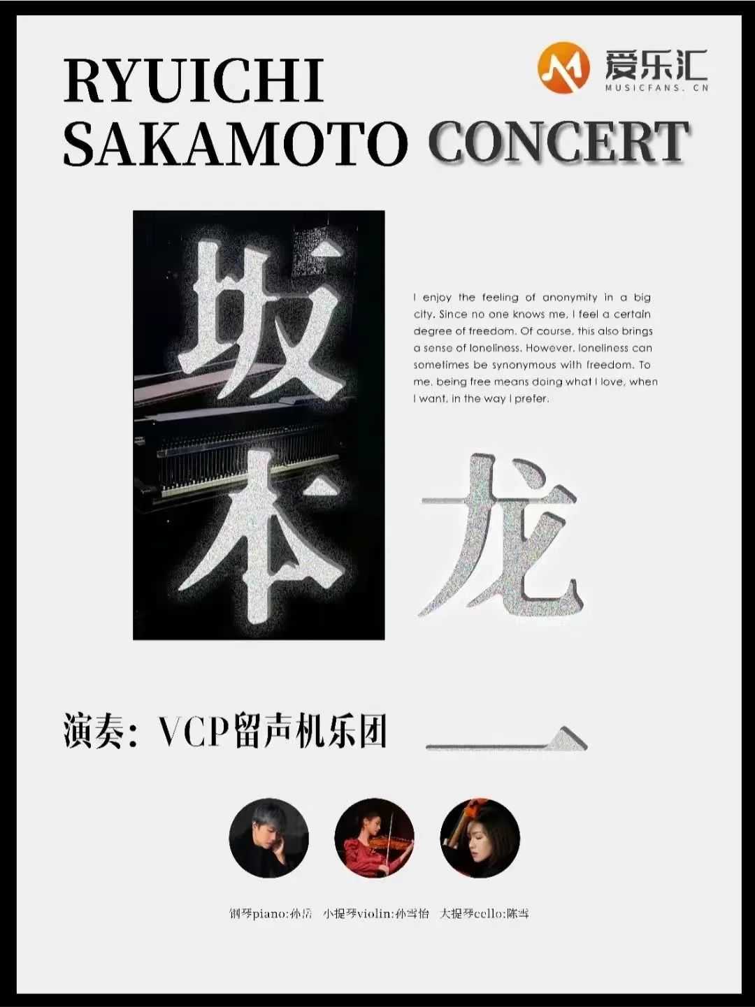 现场演奏曲目包括《圣诞快乐劳伦斯先生》《末代皇帝》《雨》以及《请你以名字呼唤我》主题曲,由爱乐汇全新推出的音乐演奏组合VCR留声机演奏家乐团演奏组曲。