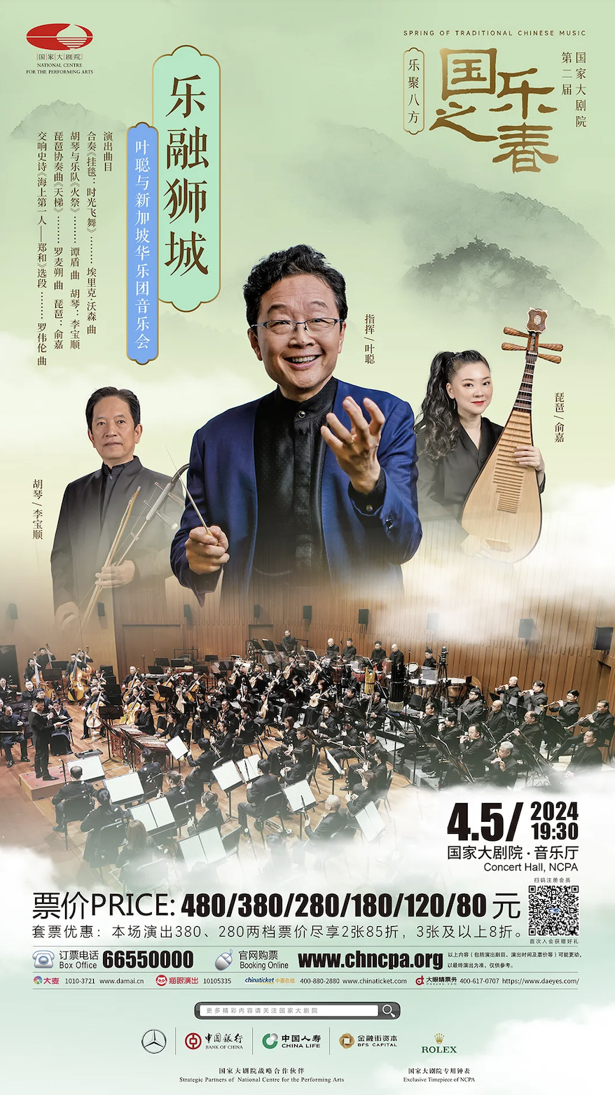 国家大剧院第二届“国乐之春”,在荣誉指挥叶聪的执棒下,新加坡华乐团将演奏两首由新加坡文化奖得主埃里克∙沃森与罗伟伦的创作《挂毯∶时光飞舞》与交响史诗《海上第一人——郑和》,让观众沉浸在浓浓的南洋异国风情。