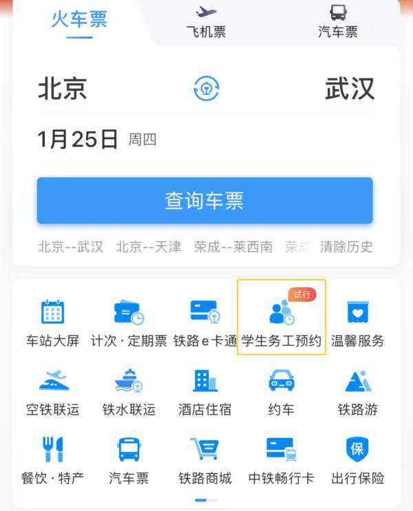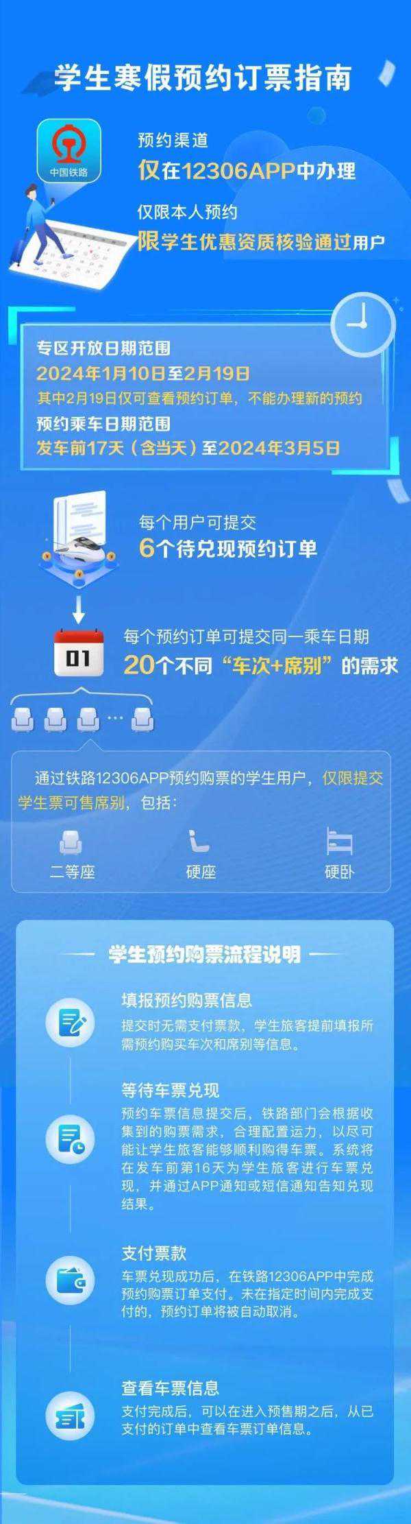 10日起,铁路12306App为学生、务工人员推出预约售票服务专区。