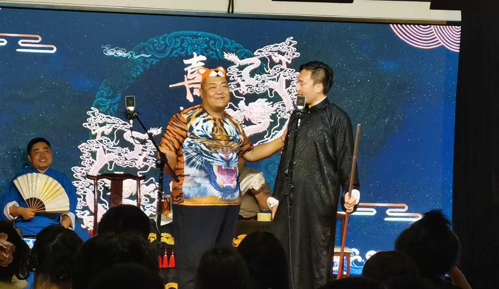 在喜笑会的创作中,相声段子从不拘泥于传统,而是结合潮流不断创新出充满“年轻态”的艺术形式。无论是日语清唱灌篮高手主题曲,还是相声版《武松打虎》,演员们用幽默诙谐的语言、夸张的表演神情笑翻全场。台下观众也分外热情,鼓掌、喝彩、欢呼、接茬儿、起哄,个个无师自通,把气氛推向一个又一个高潮。