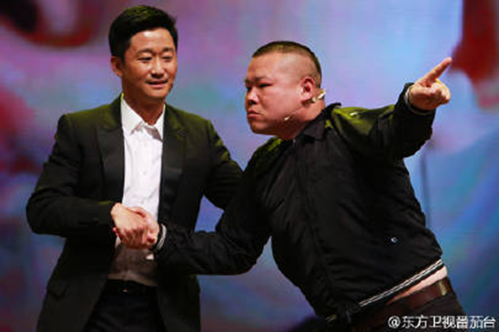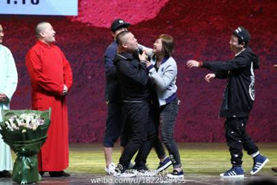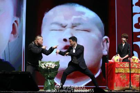 2016-4-16发文:郭老板于老板今天有个重头戏,你们肯定都知道了,跟刘威、张国立、孟非、冯小刚说相声,目前的进展是,第一位上台的刘威现在已经被郭老板“非礼”了……非礼了……非非非非非礼了……