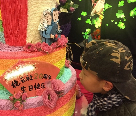 2016-4-16发文:“德惠风云,感恩天下”,德云社20周年生日快乐!来的亲朋不要太多哦~郭老板的新袄袄不要太亮哦~~把二少爷也抱出来了!主持人马东和张国立老师纷纷表示郭老板不带着少爷不行啊他还得喂奶呐……(捂脸)