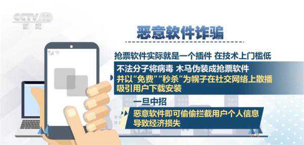 恶意软件诈骗:抢票软件实际就是一个插件,在技术上门槛低,不法分子将病毒、木马伪装成抢票软件,并以“免费”“秒杀”为幌子在社交网络上散播,吸引用户下载安装。一旦中招,恶意软件即可偷偷拦截用户个人信息,导致经济损失。