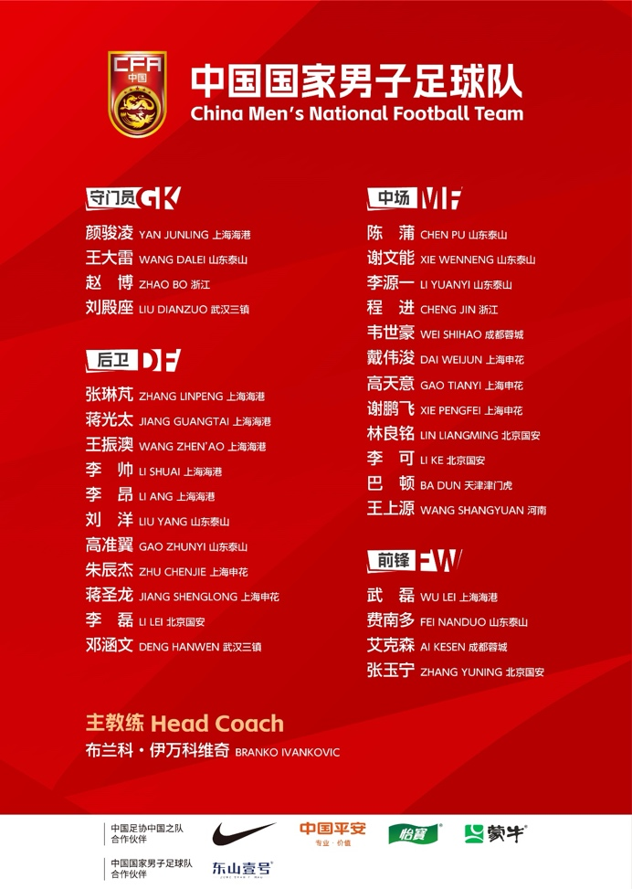 在伊万科维奇的第一期集训名单中,既有谢文能、王振澳等新鲜血液注入,也有为国效力超百场的张琳芃和已出场94次的武磊等中流砥柱坐镇。入籍球员方面,近期在亚冠赛场表现不俗的费南多也有望首次在主场球迷面前身披中国队队服亮相。本场比赛对于中国国家男子足球队能否顺利入围国际足联2026世界杯暨2027亚足联沙特亚洲杯联合预选赛第三阶段继续冲击美加墨世界杯的梦想有重要意义。希望长久以来支持和关心中国足球的球迷朋友们,来到现场为我们共同的主队加油助威。