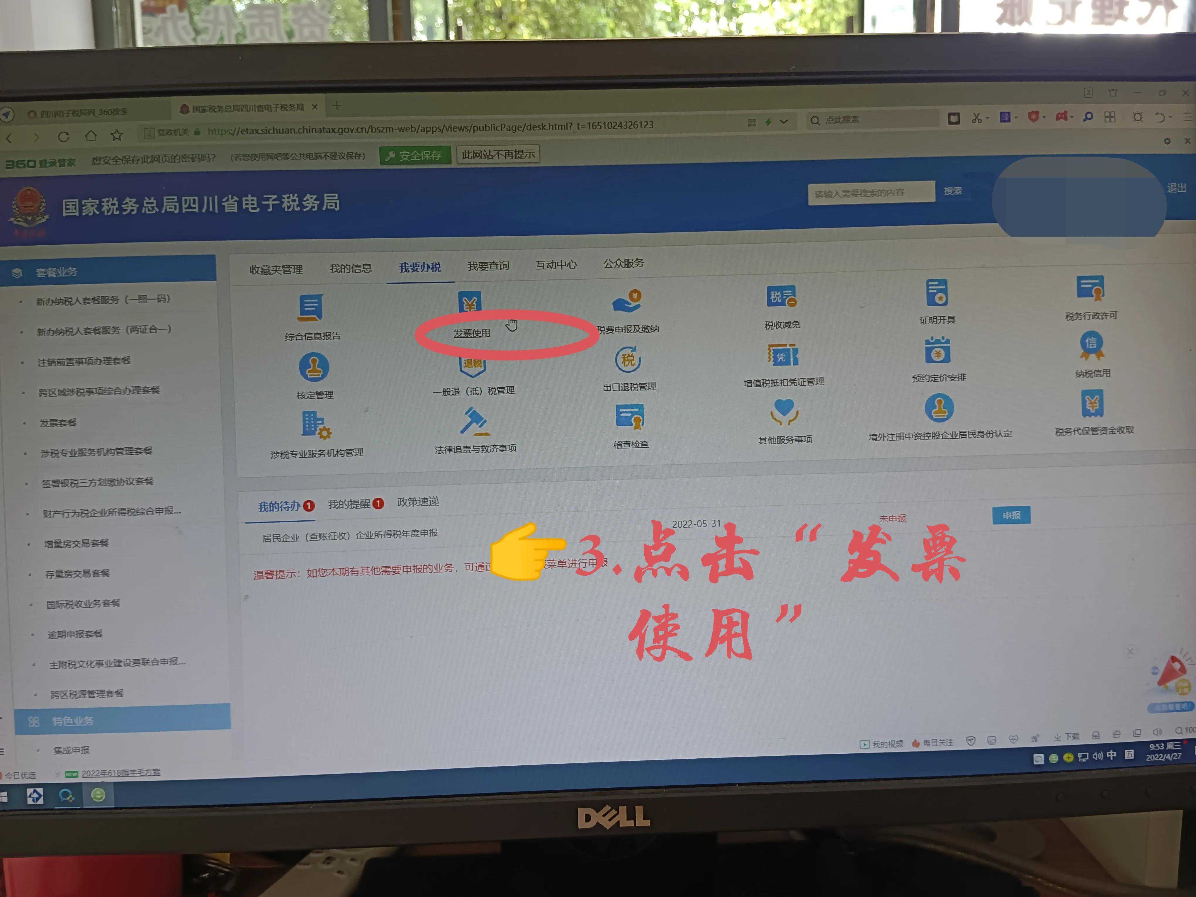 01发票领用☞①☞登录国家电子税务局