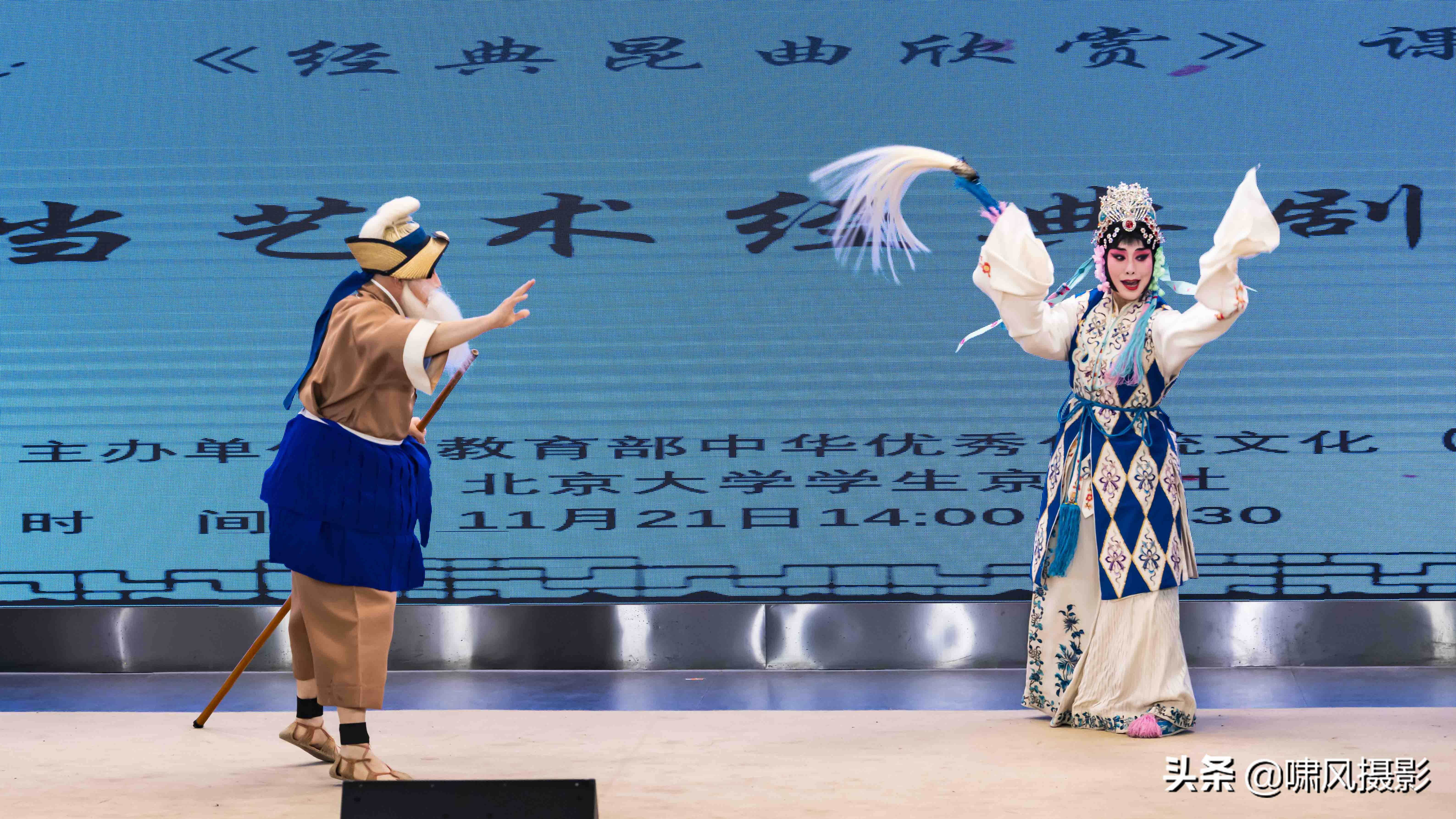 2019年11月21日国家京剧院三团徐畅书记带队进北京大学校园,演出昆曲《游园》、京剧《三岔口》、《秋江》,本篇将京剧《秋江》表演实况剧照分享给大家。