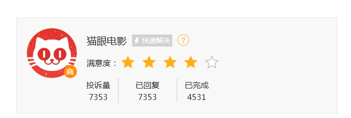 在扩充客服方面,猫眼票务介绍目前的客服人数是按照周末高峰量级准备的,足以保障一般节假日高峰客诉需求;这点可以从黑猫投诉平台猫眼的回复率是100%,解决率在行业排名位列前茅可以看出。如遇大型档期高峰,如春节档、暑期档、国庆档等,将加大强度调用体系内其业务线客服支援、补充签约客服公司以支持一定时间内的大量服务需求。