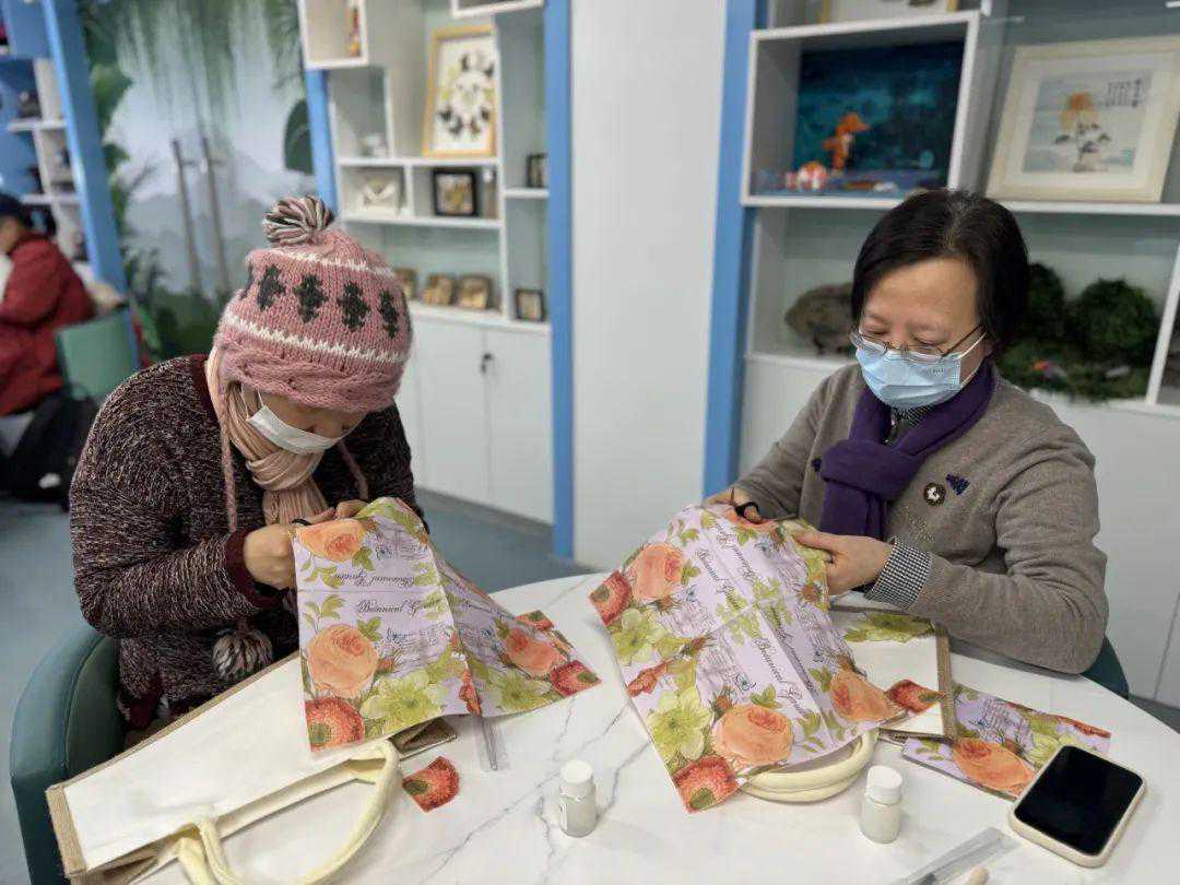 老师首先介绍了蝶古巴特的由来以及如何制作蝶骨巴特帆布包。大家在老师细心地指点下,利用丰富的纸巾素材,充分发挥了自己的独特的审美和创造力,一幅幅精心设计的艺术元素跃然包上,个性十足的帆布包逐渐呈现在大家的眼前,融合了个人偏好和特色的蝶古巴特帆布包,也是给自己的节日赠礼。