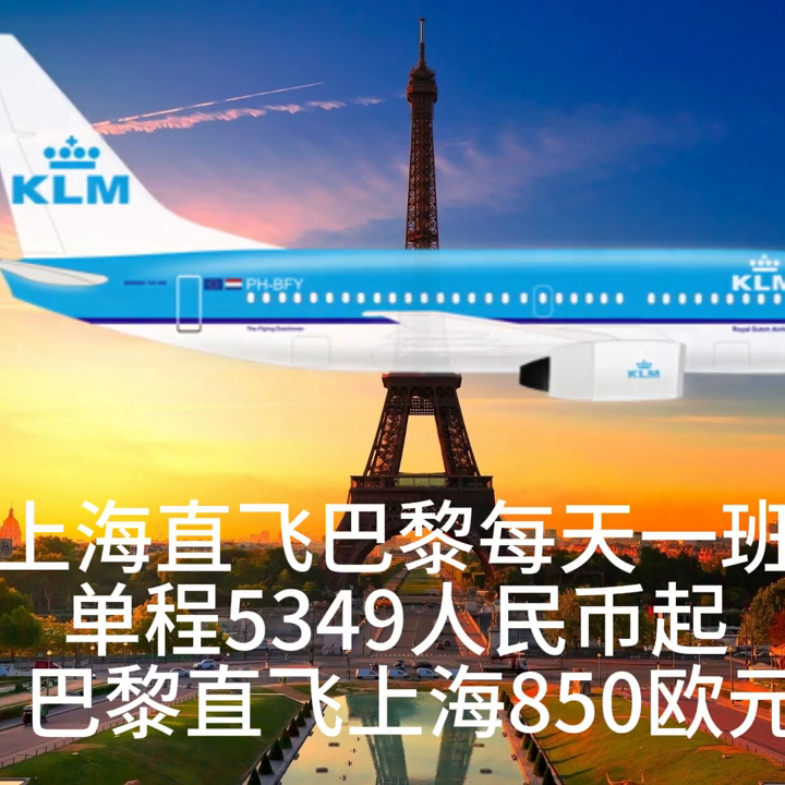 ·上海至巴黎的航班班次为每天一班,单程机票价格为53000人民币起。