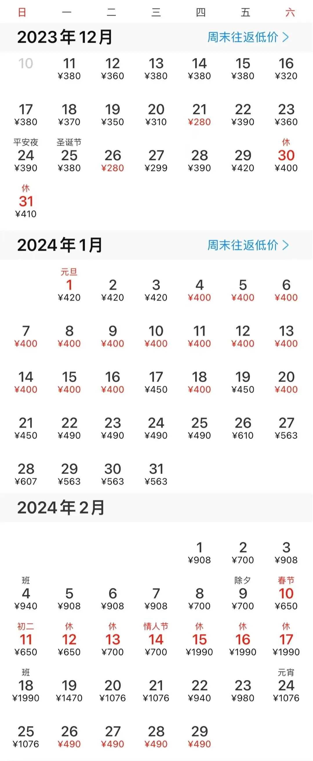 春节前部分热门航线