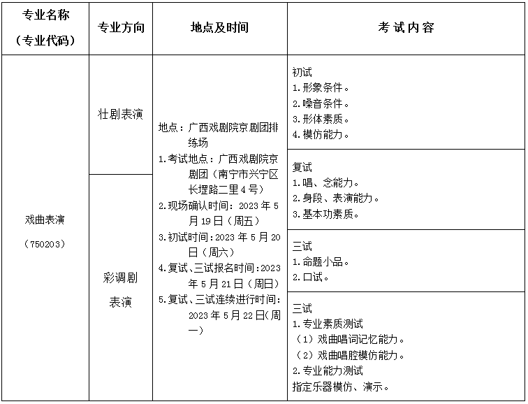 2023年面向广西、云南、贵州计划招收中专戏曲表演专业40人。