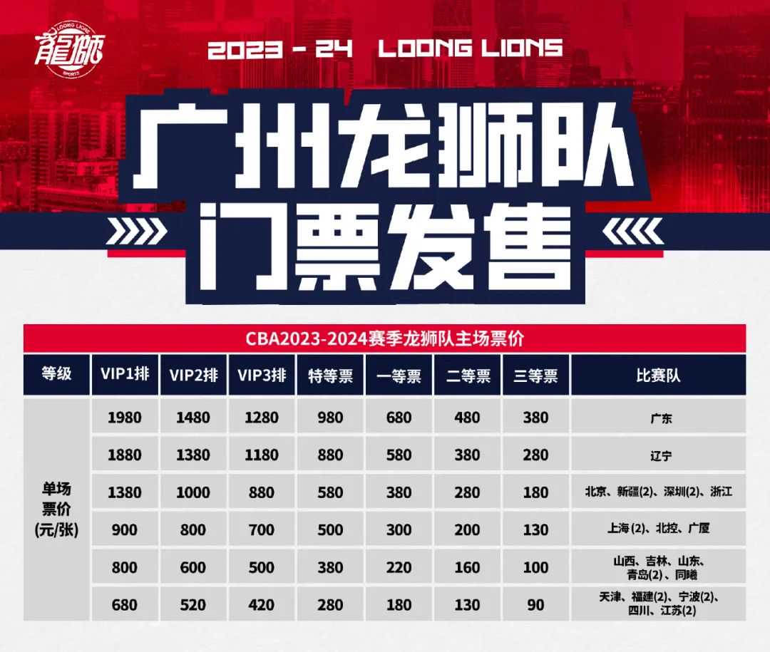 但有的球队,比如广州龙狮,就足足把门票分出了6档,而且他们的一档球队有且只有广东一支球队,最便宜的门票售价380元,比第6档的球队贵了290元,足见广东队在广州龙狮心目中的地位。