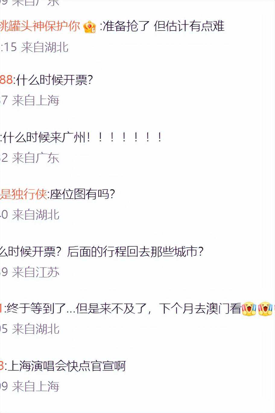 其他城市的歌迷首先纷纷提问:什么时候来广州、上海、北京、深圳……而且这么一来,确实给人一种“今年好多演唱会”的感觉有没有?