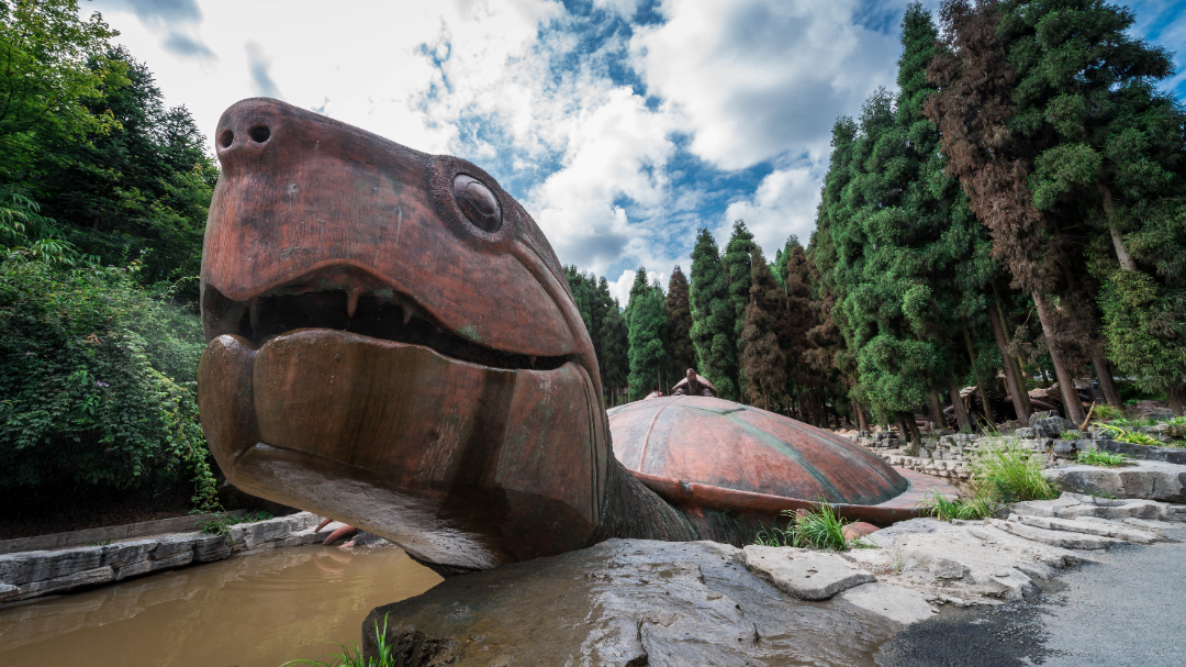 除了在溶洞感受声光电的刺激,南宝山的天罡神龟是亚洲第一大神龟雕像,其身上可以同时容纳下200人。很多人都会到南宝来摸一摸神龟,祈祷健康。