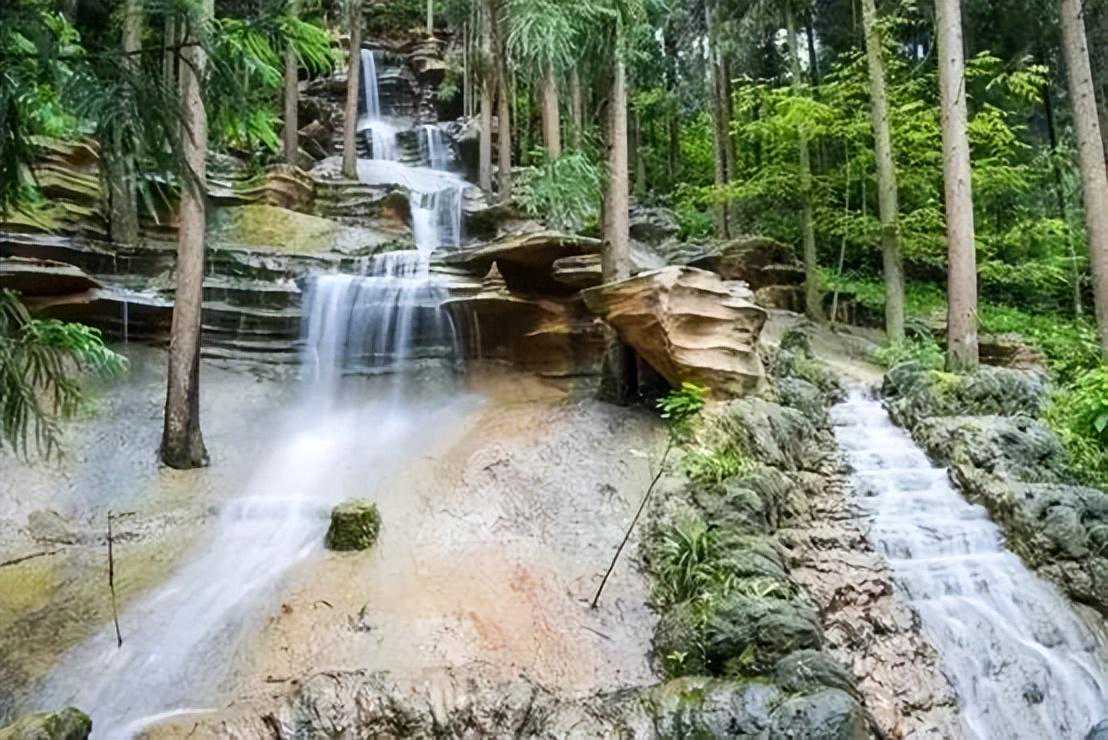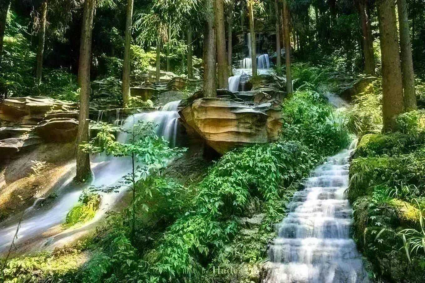 下一站就是南宝山峡谷瀑布,这里能体验到远古茶马古道的感觉,古道两边是潺潺的溪水,错落有致的瀑布。峡谷瀑布坐落于南宝山大峡谷,全长5公里,谷内两边古树青绿幽幽,夏天走在这里非常凉快。