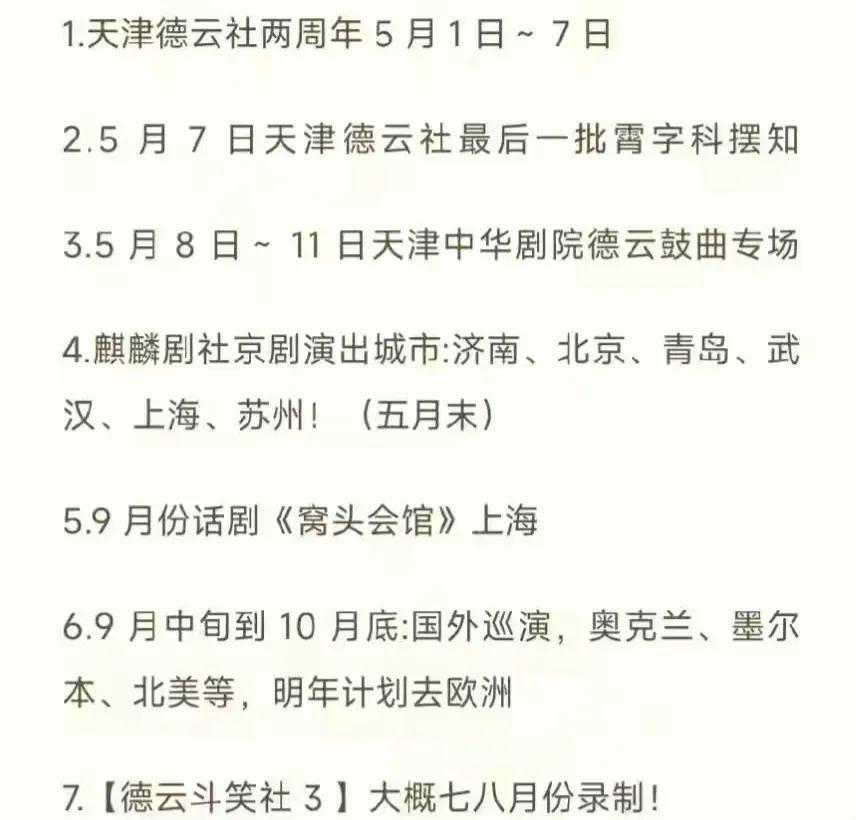 老郭还说《德云斗笑社》第三季今年要拍了。巡演也会陆续开始。还会去国外演一圈,大概十月才回国。