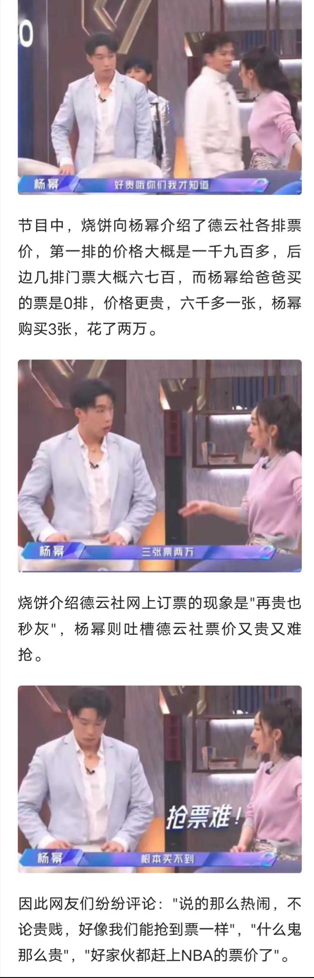 杨幂也曾向烧饼“抱怨”过,德云社的专场票太难买了。