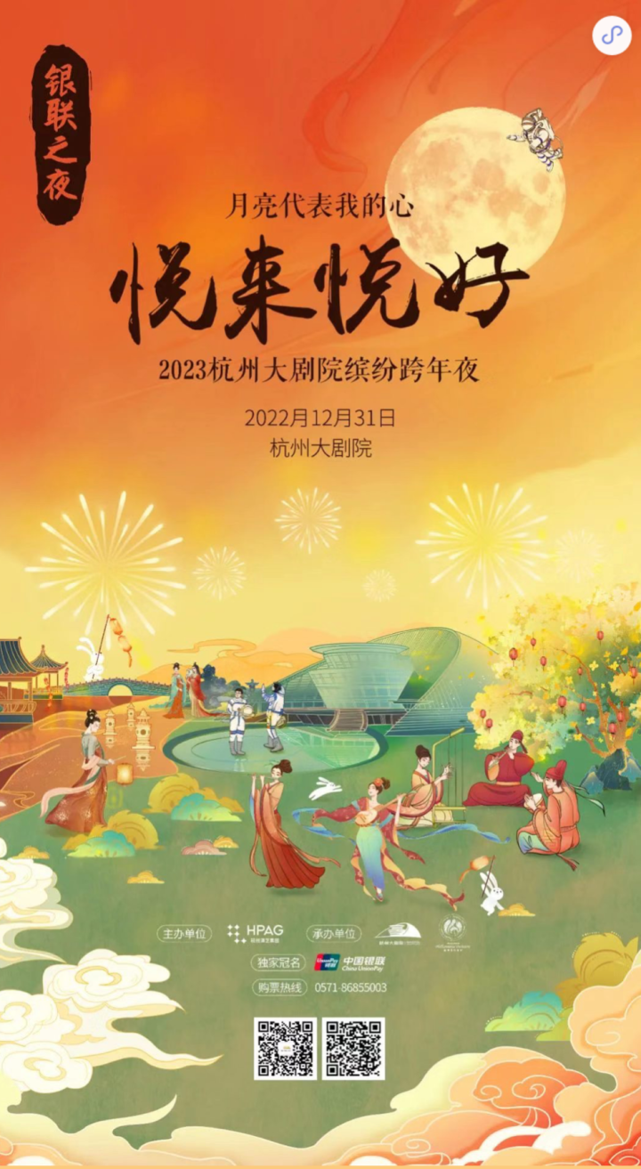 2016年至今,杭州大剧院“月亮代表我的心·悦来悦好”缤纷跨年夜活动已经成为杭城观众跨入新年必备的“仪式感”。2023正值杭州大剧院18周年,今年的跨年夜将以8厅同开的盛大规模,乐园式的演出形式,结合沉浸式的游园玩法,呈现给观众一场美仑美奂、精彩纷呈的跨年夜演出活动。