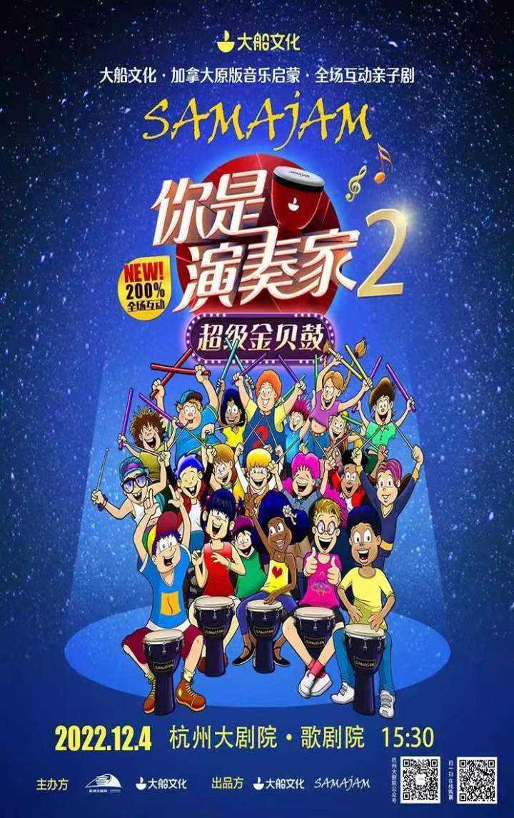 2022年12月4日,丢掉烦恼,放飞心情!万能SAMAJAM降临!加拿大原版全场互动亲子剧《你是演奏家2·超级金贝鼓》SAMAJAM让无数家庭为之疯狂。精致的乐器包不用担心安全问题,沉浸在热闹音乐海洋中快乐万分。