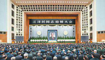 12月6日,中共中央、全国人大常委会、国务院、全国政协、中央军委在北京人民大会堂隆重举行江泽民同志追悼大会。