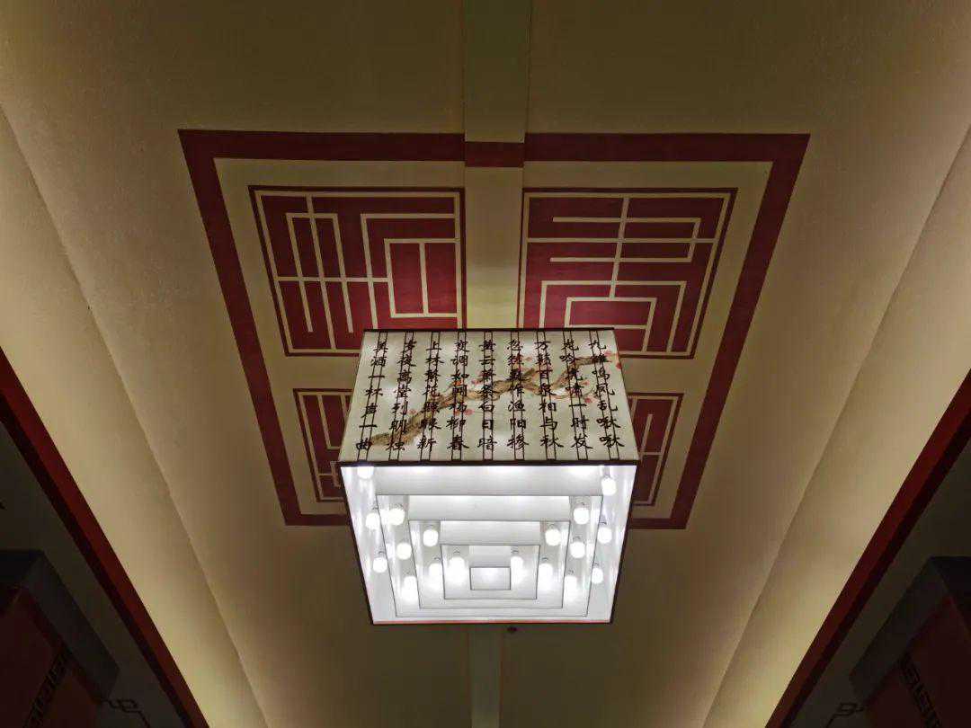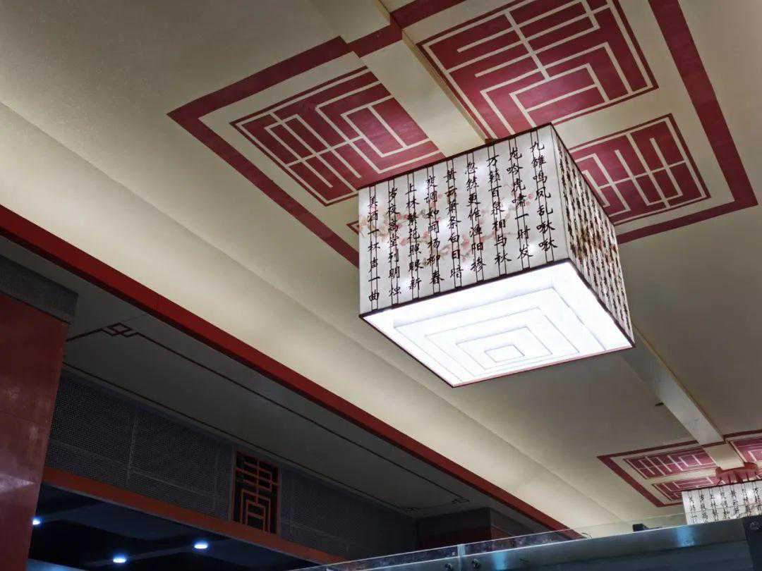 车站中跨主吊灯纯铜中式造型杆件,与陶瓷镂空艺术灯罩相结合,体现浓浓的古都文化风韵。