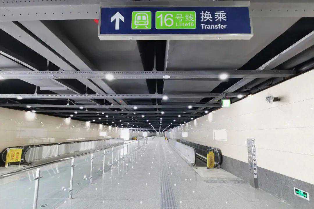 换乘通道设置了4处净宽1米,长25米的自动人行道步行电梯,提高换乘舒适度与换乘效率。