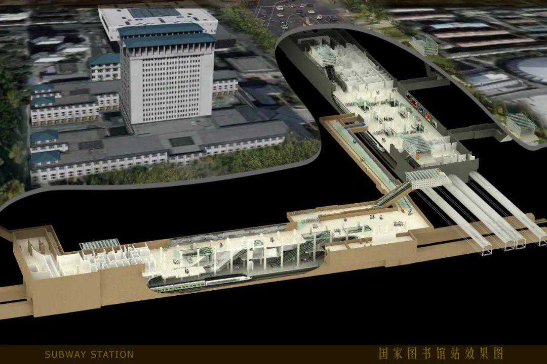 16号线国家图书馆站,呈东西向布设,总长205.6米,车站设有两个出入口以及一个与4号线、9号线国家图书馆站连接的换乘通道。