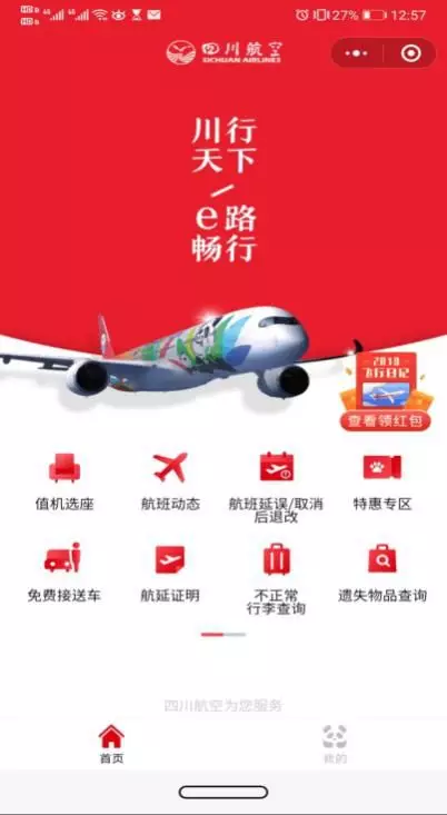 四川航空微信小程序截图